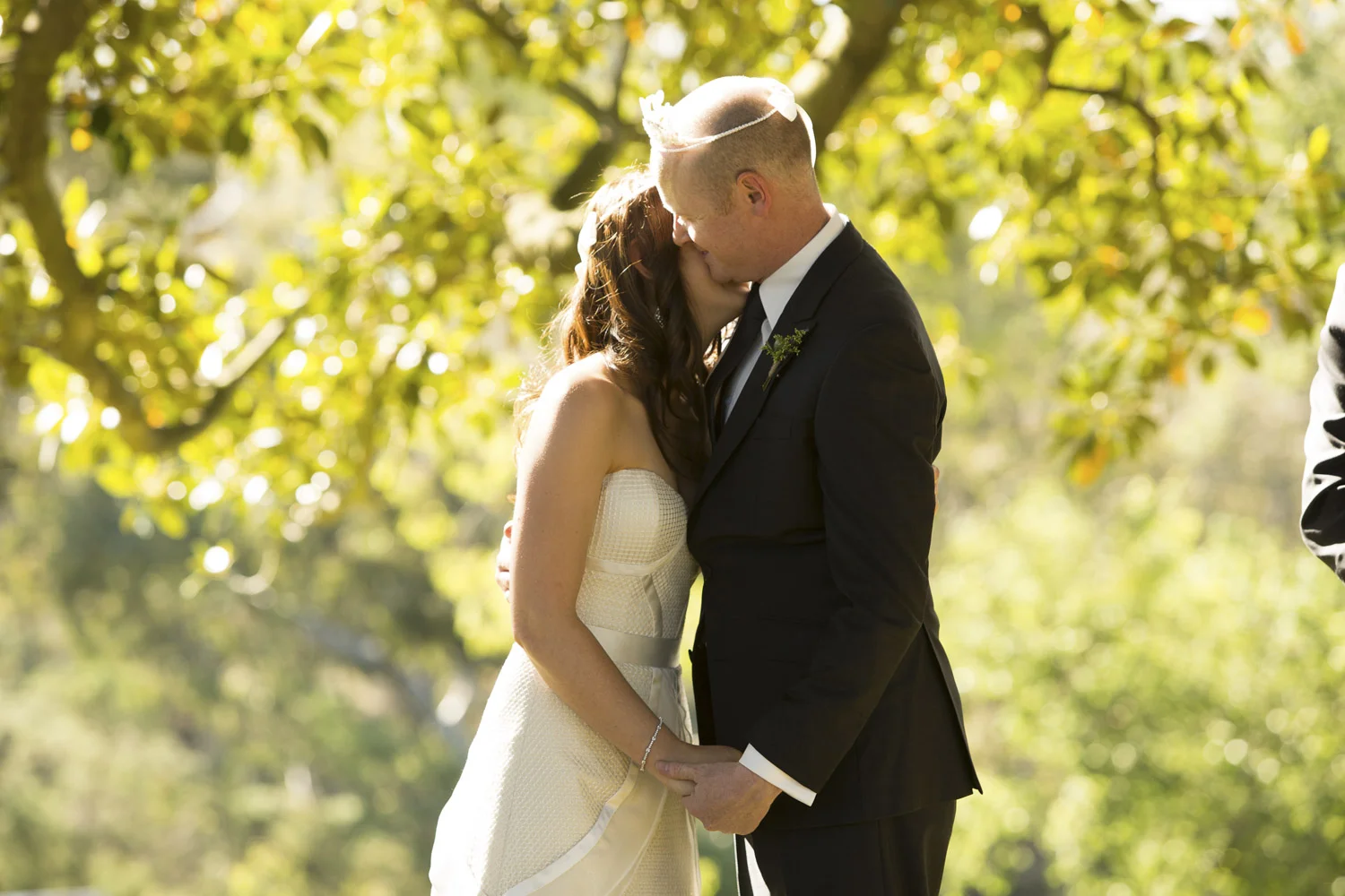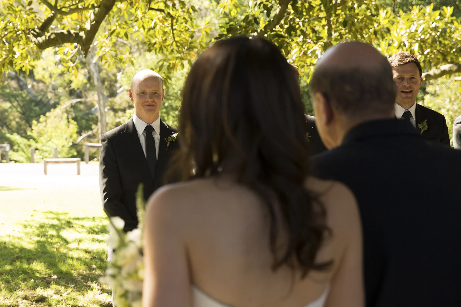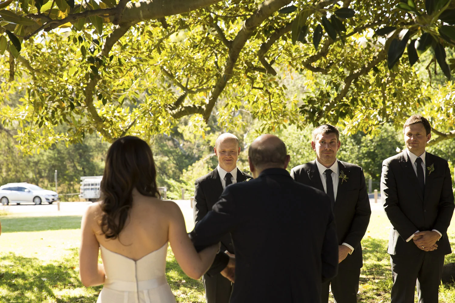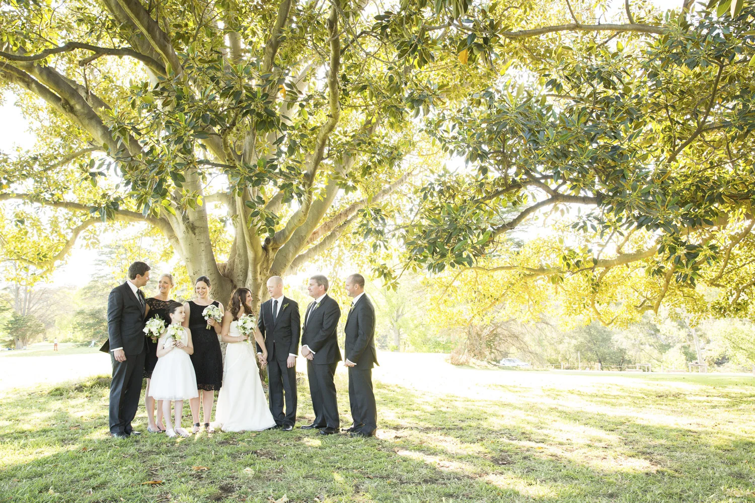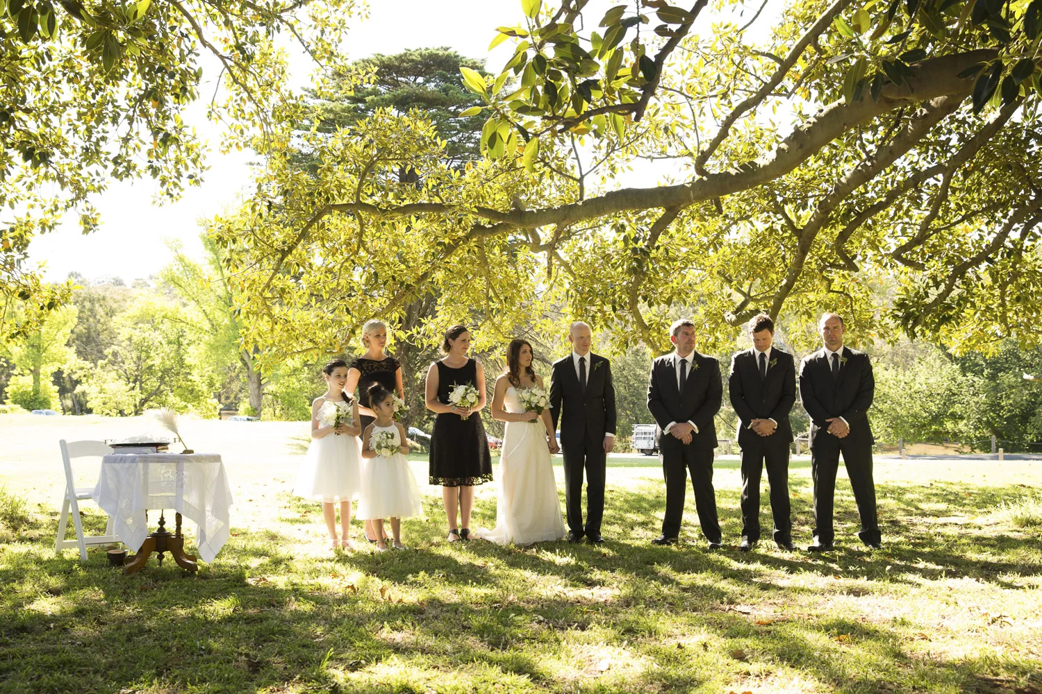 Under an old oak tree, with the warm sun shining through the leaves, is where Jamie and Lee got married.