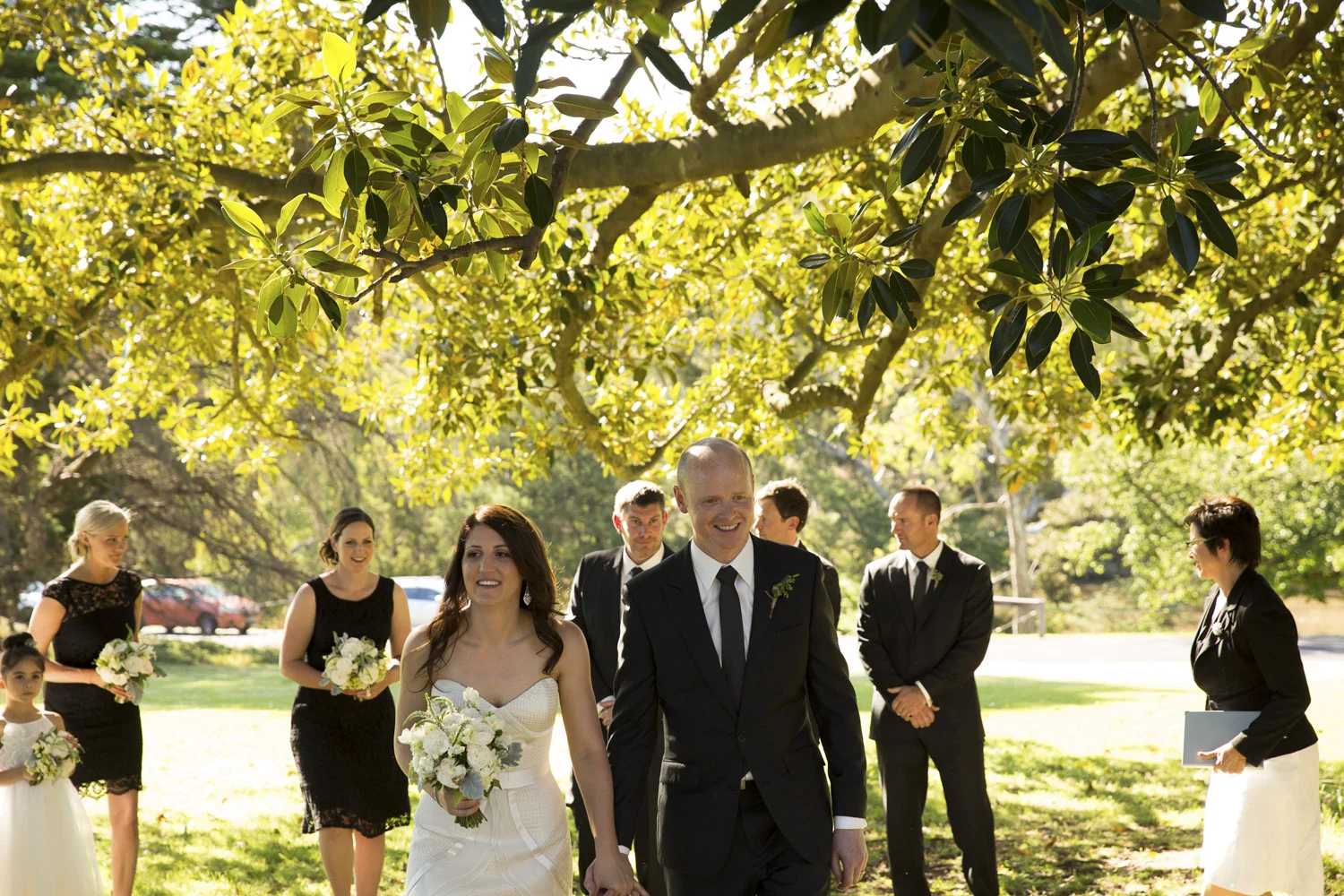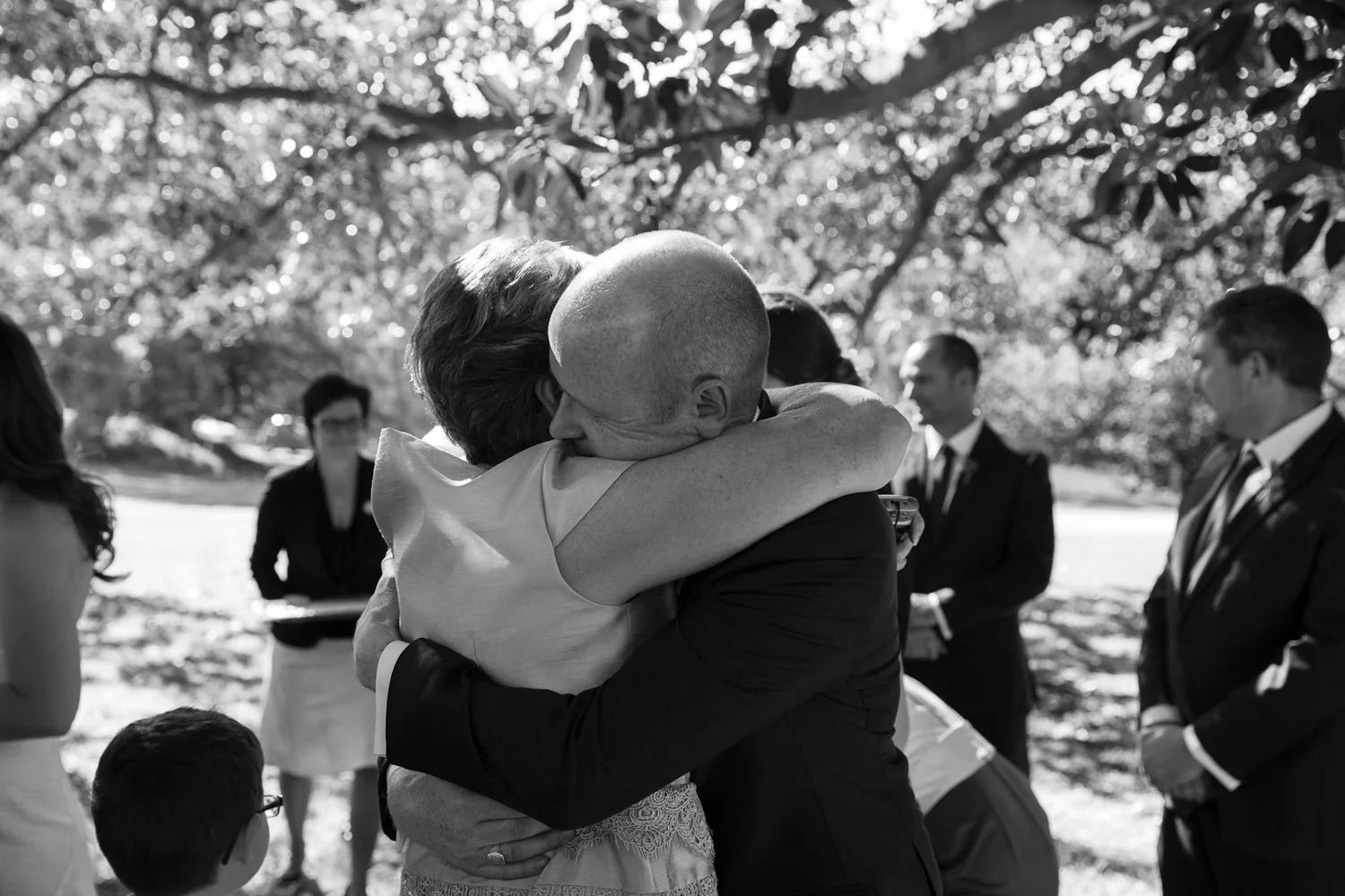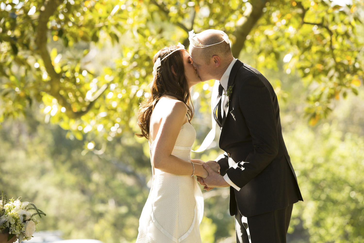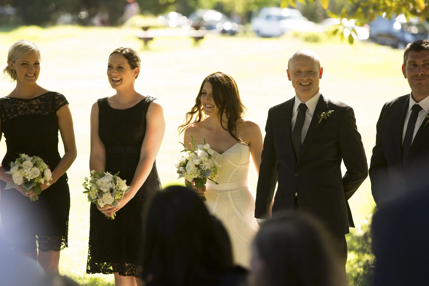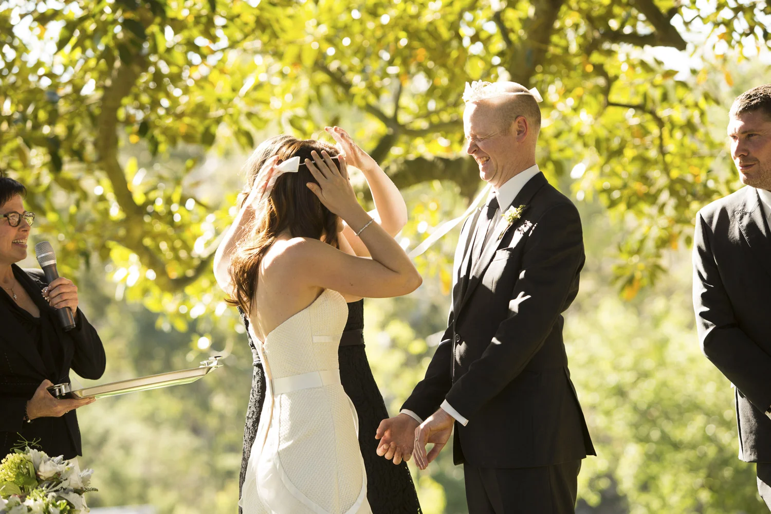 Under an old oak tree, with the warm sun shining through the leaves, is where Jamie and Lee got married.